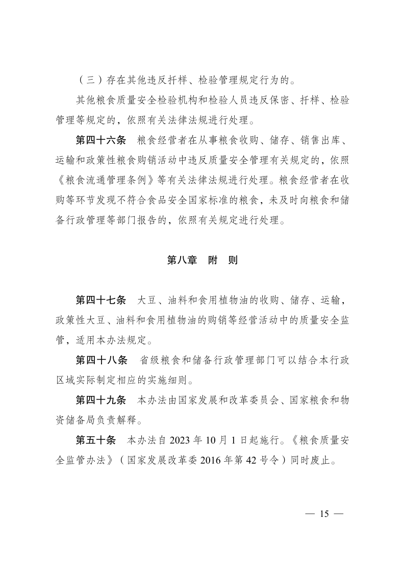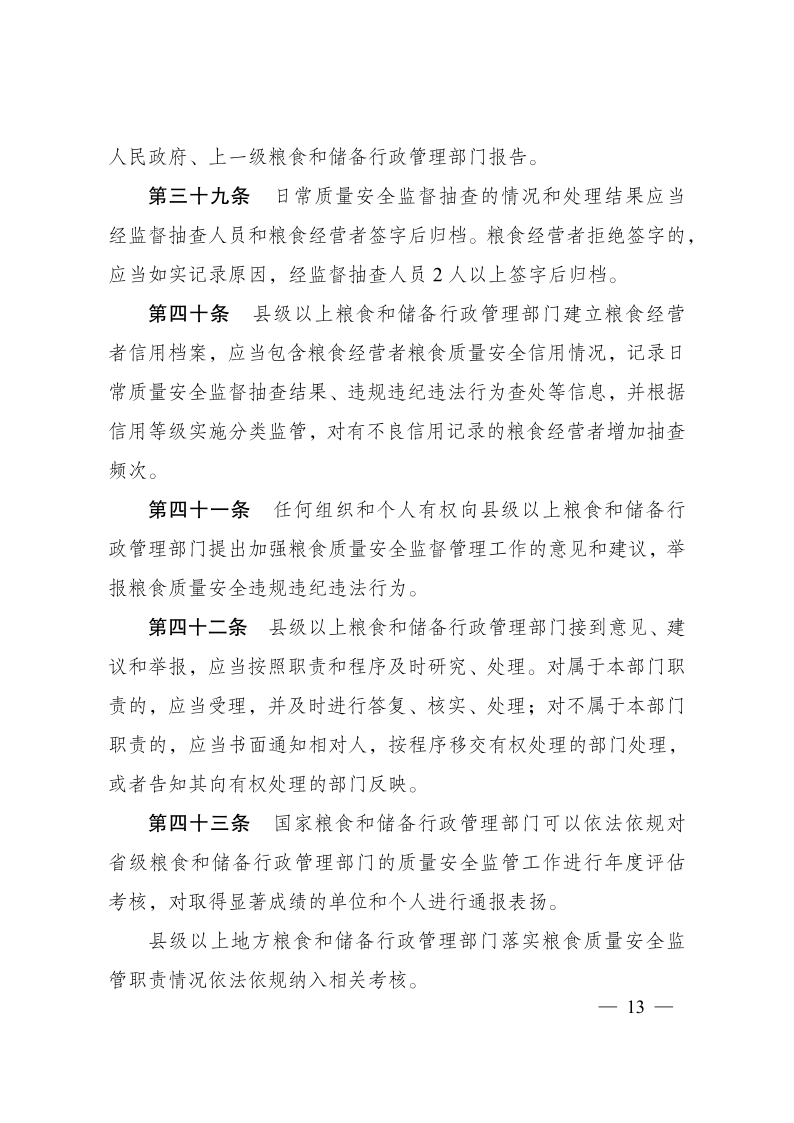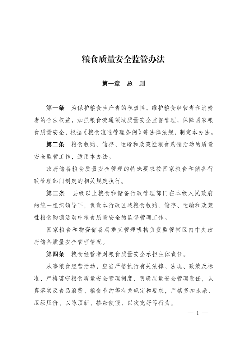 糧食質(zhì)量安全監(jiān)管辦法
